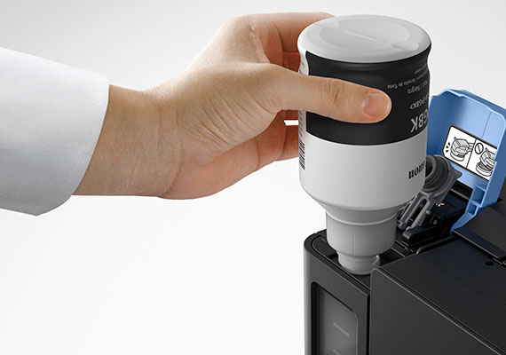 Ink bottles are truly spill-resistant, with a unique tip-and-receptacle design. Ink filling stops automatically when the air hatch of the tank touches the fluid level.