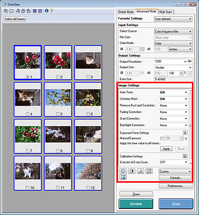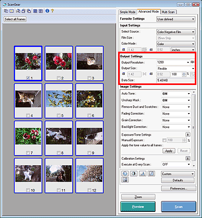 | Image Settings | Apply the following functions: Auto Tone, Unsharp Mask, Remove Dust and Scratches, Fading Correction, Grain Correction, Backlight Correction and Exposure/Tone Settings. |