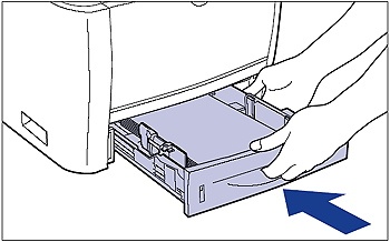 Push the paper cassette into the printer firmly until the front side of the paper cassette is flush with the front surface of the printer.