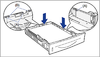 - Whether the paper stack does not exceed the load limit marks (B)