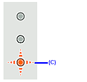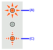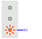 ![]() (C) The Ink lamp lights. | Ink is low. You can continue printing for a while, but we recommend you to have a new FINE Cartridge available. *The diagram on the left indicates the status of the Color FINE Cartridge as an example. |
