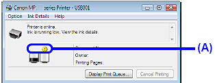 You can also display the printer status monitor by clicking Canon XXX Printer (where "XXX" is your machine's name) which appears on the taskbar during printing.