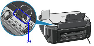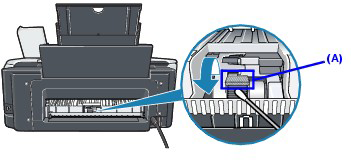 If the problem is not resolved, wipe the paper feed roller (A) located on the right side inside the Rear Tray with a moistened cotton swab or the like. Rotate the roller (A) manually as you clean it. Do not touch the roller with your fingers; rotate it with the cotton swab. If this does not solve the problem, contact your Canon service representative.