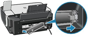 Press firmly on the Rear Cover on the rear of the machine until it is locked in place. If the Rear Cover is not reattached properly, paper may not be fed properly and cause paper jams.
