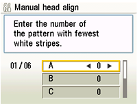 If the results of Automatic Print Head Alignment are not satisfactory, follow the procedure below to perform Manual Print Head Alignment.