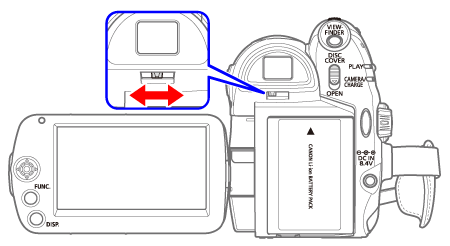 When recording in bright places it may be difficult to use the LCD screen. In such case, change the brightness of the LCD screen or use the viewfinder instead. To use the viewfinder, keep the LCD panel closed. Press viewfinder to activate the viewfinder along with the LCD panel. Close the LCD panel to use only the viewfinder.
