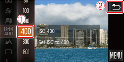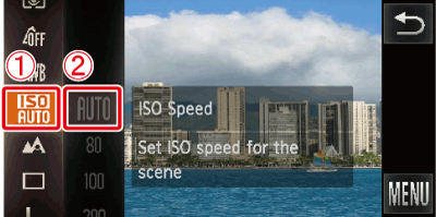 [ISO Speed]* of your choice.After the selection is made, touch