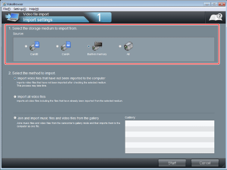 2. Select the memory that contains the video files you want to import.