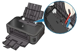 - When you load the paper on the Rear Tray, load the paper with the print side facing UP and slide the Paper Guides to align with the both sides of the paper.