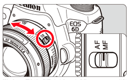 3. Set the lens focus mode switch to<MF>. You can also shoot with <AF>.