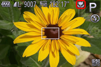 If you are shooting a subject at a close distance, and if the subject cannot be easily focused within the normal shooting range, switching the normal mode to the [Macro] () mode will make it easier to focus on the subject.