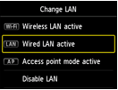 6. Tap [Wired LAN active].