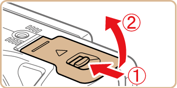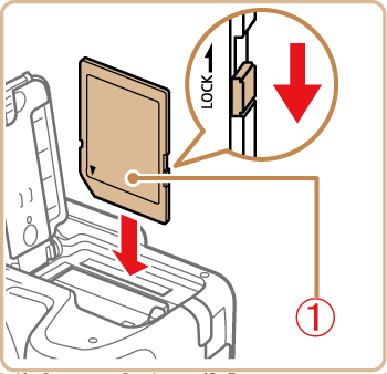 facing as shown until it clicks into place.Make sure the memory card is facing the right way when you insert it. Inserting memory cards facing the wrong way may damage the camera.