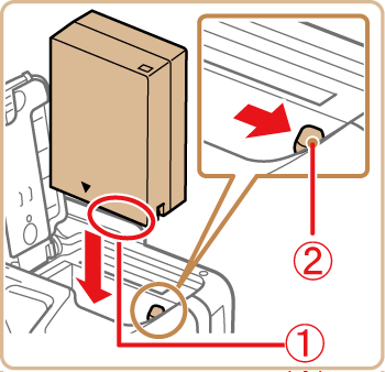 in the direction of the arrow and insert the battery pack until the lock clicks shut.If you insert the battery pack facing the wrong way, it cannot be locked into the correct position. Always confirm that the battery pack is facing the right way and locks when inserted.