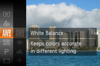 Auto | Automatically sets the optimal white balance for the shooting conditions. |