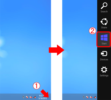 2B-1. Move the pointer to the bottom right of the screen to display the Charms