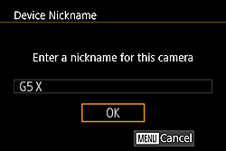 - If the [Device Nickname] screen is displayed, choose [OK]. (The camera model name (G5 X) is set as the nickname by default.)