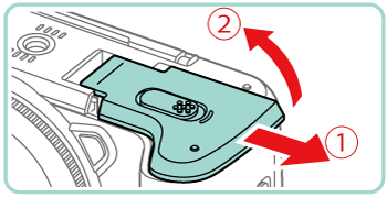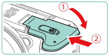 • Load a fully charged Battery Pack and a memory card (sold separately) into the camera.
