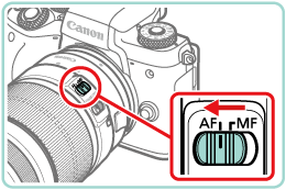 • When using an EF or EF-S lens, set the focus mode switch to [AF].