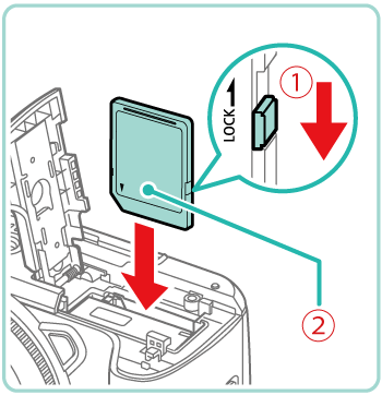 • Recording is not possible on memory cards with a write-protect tab when the tab is in the locked position. Slide the tab to the unlocked position ().