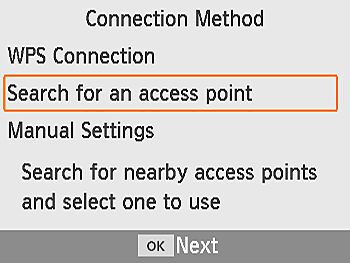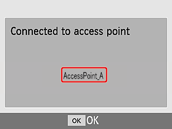 > button. - [Connecting] is displayed on the printer, followed by [Connected to access point] when connected. Press the <