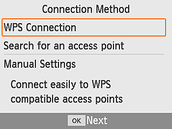 > buttons to select [WPS Connection], and then press the <