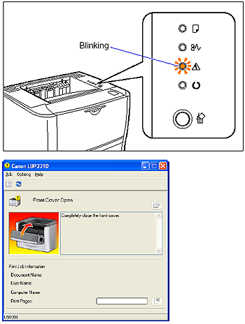 (Alarm) indicator (orange) blinks and the following error message appears in the Printer Status Window.