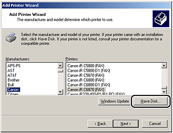3. Insert the Software CD-ROM into the CD-ROM drive > click [Have Disk].