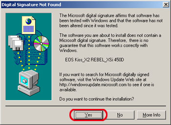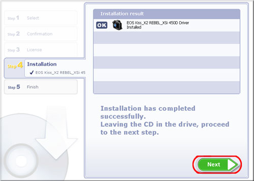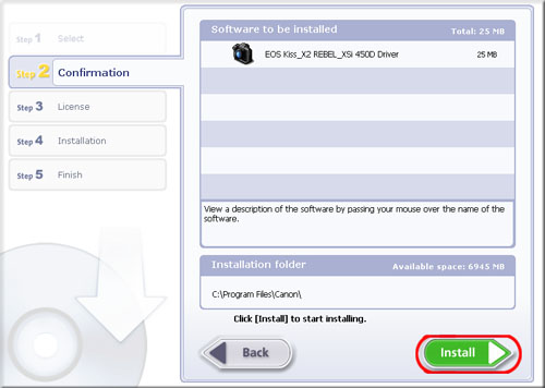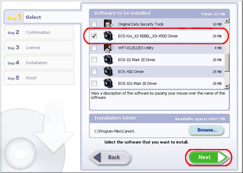 5. A list of software to be installed appears. Select [EOS Kiss_X2/EOS REBEL_XSi/EOS 450D Driver] in the image below.