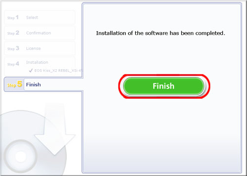 - Your computer may start an application such as Imaging or display the Canon EOS Digital Camera TWAIN Driver window, depending on its settings. Close the window if it appears, to complete the installation of TWAIN driver.