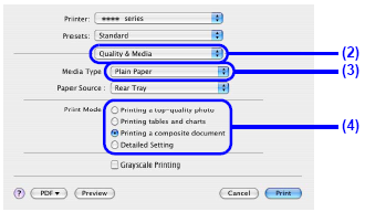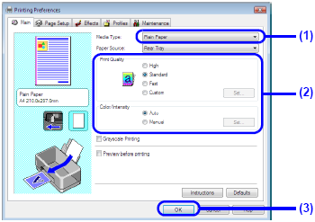 (1) Select the media type of the loaded paper in Media Type.