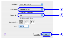 (3) Select the page size of the loaded paper in Paper Size.