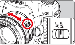 3. Set the lens focus mode switch to <MF>. You can also shoot with <AF>.
