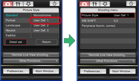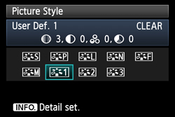 > on the camera to display the Picture Style window on the LCD monitor. You can confirm that the Picture Style file registered with EOS Utility is applied to [User Def. 1].