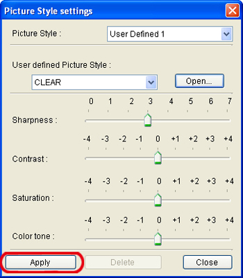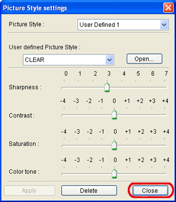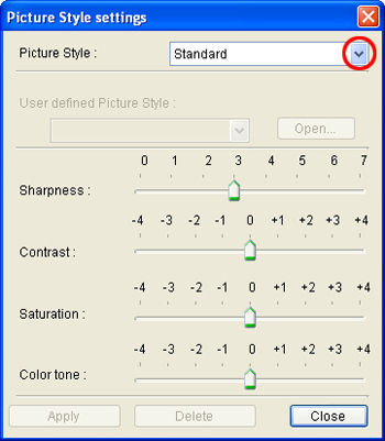 6. In the [Picture Style settings] dialog box that appears, select one of the User Defined options from the [Picture Style] list box ([User Defined 1] is selected here, for example).