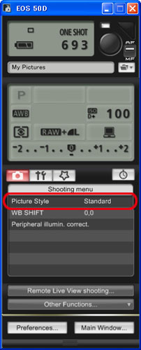 4. In the window that appears, click the camera icon and [Picture Style].