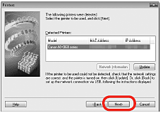 3. When the Printers dialog box appears, select the machine, then click Next.