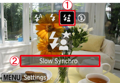 Setting the flash (Slow Synchro Function)