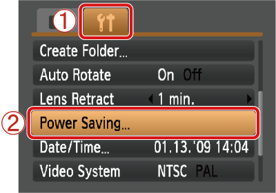 Operate the <directional buttons> to set the [Power Saving].After making a selection, press the <FUNC./SET> (