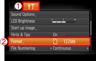Operate the <directional buttons> up or down to select [Format].After making a selection, press the <FUNC./SET> (