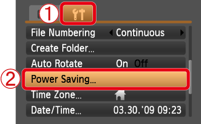 Operate the <directional buttons> to set the [Power Saving].After making a selection, press the <FUNC./SET> (