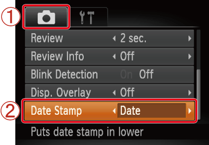 Operate the < directional button > to set [Date Stamp] to [Date] or [Date & Time].After making these settings, press the < MENU > (