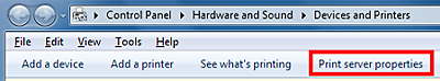 2. Open Print server properties, then select the Drivers tab. ''Print server properties'' will be displayed at the top of the dialog as shown below by clicking any device icon in Printers and Faxes.