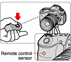 Remote controller RC-6 (Sold separately) enables you to take pictures wirelessly up to about 5 meters/16.4 feet from the camera. You can either shoot immediately or use a 2-sec. delay.
