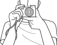 Keep your arms tight against your body while holding the camera firmly by the sides. Be sure that your fingers do not block the <flash> while it is raised.