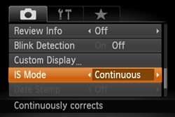 - Set the [IS mode] to [Continuous].