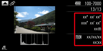 (Displayed) status, you can record and check the location information (latitude, longitude, elevation) and the shooting date/time in your images and movies.