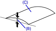 - Depending on the media type, the paper may be smudged or may not be fed properly even if it is not curled inward. In such cases, follow the procedure described below to curl the paper outward within 0.1 inch / 3 mm (B) in height before printing. This may improve the print result.