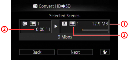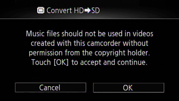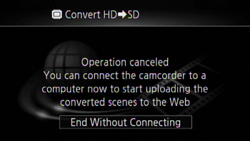 If you are converting a long scene, you can have the camcorder divide it into 10-minute SD movies to make uploading easier.