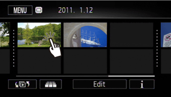 Display the index screen for the built-in memory or memory card slot A, from which data is converted, and touch the scene.